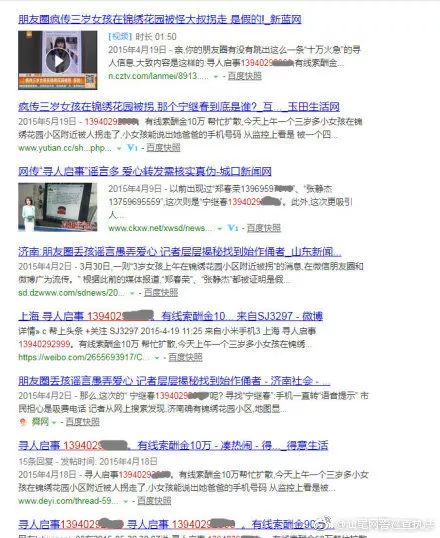 在网络中,不少“寻人启事”都是打着爱心求助旗号进行恶意营销或电话吸费。网友们在传递爱心的同时,要注意甄别信息的真伪。