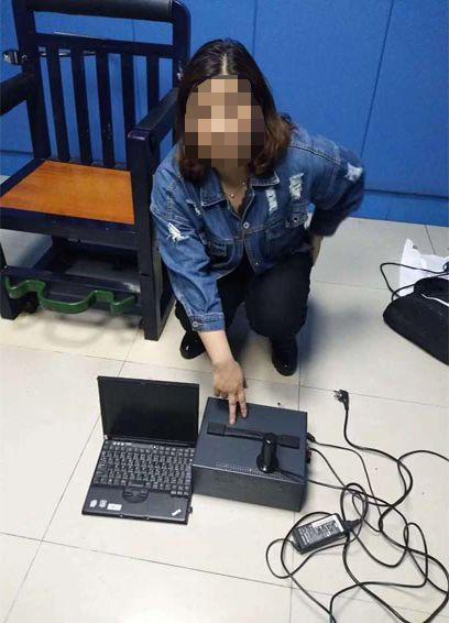 民警经过前期摸排掌握的线索,在拱北某大厦902房查获一名女子胡某花(38岁,湖南人)正在利用伪基站发送境外赌博网站的信息,现场查获一台联想牌电脑笔记本及一台发射器。