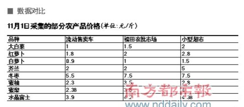 佳香商场是距离罗湖区北斗流动售卖车最近的一家超市。超市销售部黄经理介绍,流动车10月中旬进入北斗路,十多天来,商场蔬菜部的营业额下降了40%左右,目前正准备去工商局投诉。“说是惠民政策,我们也是老百姓的一分子,把点设在这里跟摆地摊的没什么区别。”黄经理说。