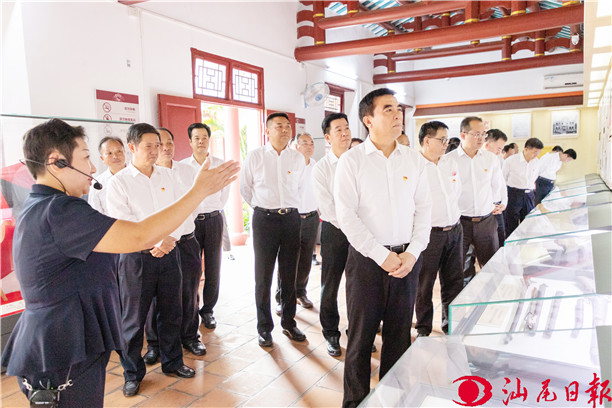 在彭湃烈士故居和海丰县总农会旧址、赤山约农会旧址,市领导同志通过历史图片、文字说明和讲解员的动情讲解,深入了解彭湃烈士的感人故事和海丰农会的发展历程,在红色洗礼中,体悟革命先辈的初心使命,深化对初心使命的认识和理解。