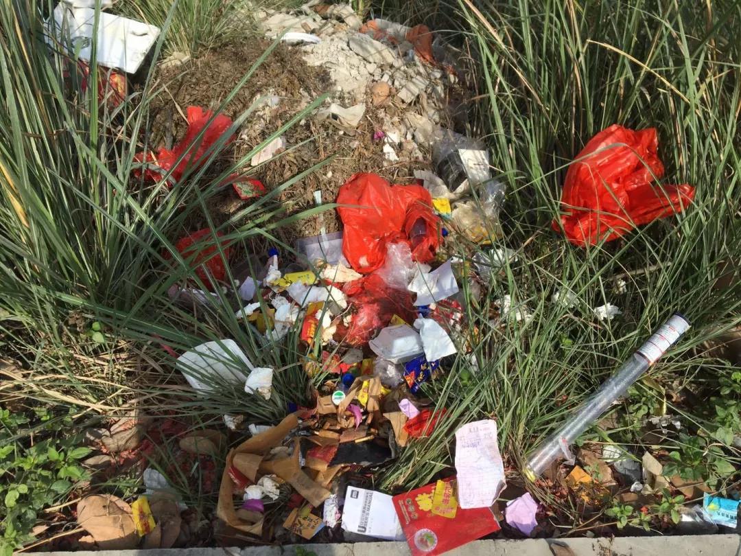 2月16日上午,我镇市场巡查组与派出所人员进行联合巡查时,发现位于田心村的路段上有未经处理的垃圾随意倾倒在街边,随后,经工作人员对垃圾的识别侦查和现场询问得知,该垃圾来自附近一处商家。