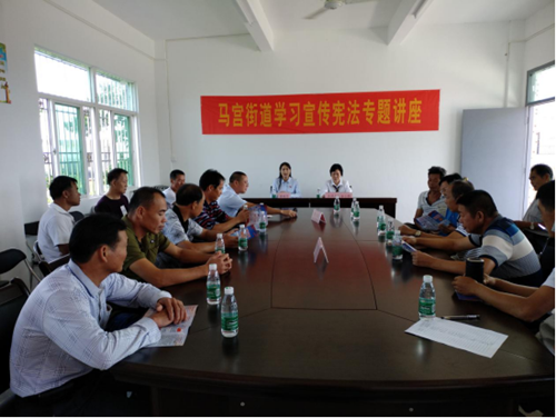 10月26日、30日马宫街道邀请驻村法律顾问李小鹊律师分别在盐町村、马宫社区、浪清村、深渔村举办宪法学习宣传专题讲座,4个村(社区)120多名“两委”干部、驻村工作组、村民小组长和村居民代表参加讲座。截至目前,马宫街道7个村(社区)全面落实宪法学习宣传讲座活动,共举办宪法学习宣传专题讲座8场,出动流动宣传车12车次,征订《宪法》读本1000本、悬挂宣传横幅16条,制作学习宣传栏2个,张贴宣传海报30多张,发放宣传资料2000多份。