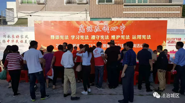 活动现场,设立宣传咨询台,并组织律师、法律工作者现场解答群众咨询,青年志愿者向过往群众派发宪法宣传手册。活动吸引了广大群众参加,现场热闹非凡,现场共发放法律宣传资料800多份、法治小礼品200份。
