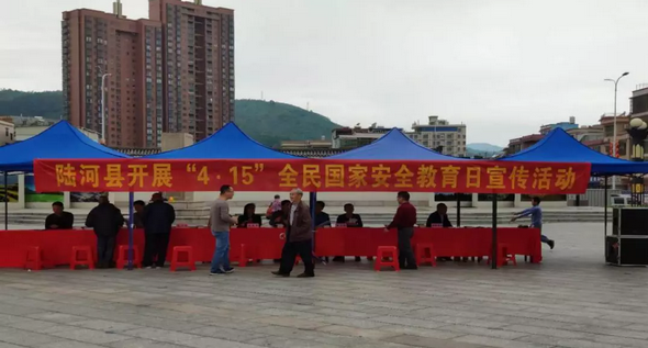 4月15日上午,陆河县委办、政法委、司法局、普法办、律师志愿者在陆河县城人民广场开展“4·15”全民国家安全教育日宣传活动。现场为群众提供国家安全法律咨询服务,进一步提升了我县公民国家安全知识与法律意识。
