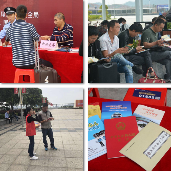在活动现场,市司法局、市委国安办、市反恐办等相关部门设置了国家安全法宣传展板、海报、横幅,并设立了10余个咨询台为群众提供涉国家安全法律现场咨询宣讲,重点宣传。在高铁站人流密集的进、出站口派发各类法治宣传资料和普法宣传纪念品,重点宣传《中华人民共和国宪法》、《中华人民共和国国家安全法》、《中华人民共和国网络安全法》、《中华人民共和国反恐怖主义法》,营造维护国家安全的浓厚法治氛围。