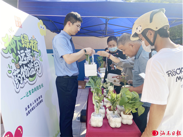 活动现场,工作人员向群众派发禁毒宣传图册,细致讲解毒品危害和防毒拒毒知识,同时赠送虎皮兰、竹柏等百余盆绿植,让禁毒理念随着鲜活的绿意融入群众生活。