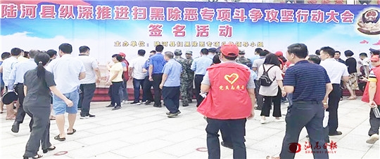 县扫黑除恶专项斗争领导小组成员,扫黑除恶专项斗争领导小组各成员单位全体干部职工,各镇分管政法副书记、纪委书记、宣传委员、组织委员、派出所所长及民兵应急分队队员,河田镇、村(社区)干部,志愿者共1000多人参加大会。