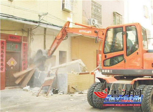 pc蛋蛋 日报讯 (记者 洪笳荣 刘佳伦) 近日,海丰县海城镇联合该县公用、住建、供电、供水等部门组成联合执法队,对该镇城西社区襟德路“两违”建筑进行强制拆除。