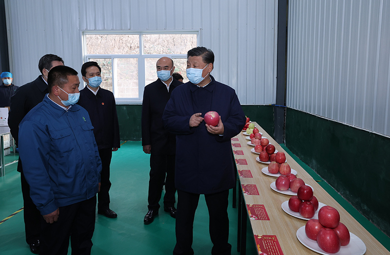 10月26日至28日,中共中央总书记、国家主席、中央军委主席习近平在陕西省延安市、河南省安阳市考察。这是26日下午,习近平在延安市安塞区高桥镇南沟村苹果洗选车间,察看当地种植的苹果。