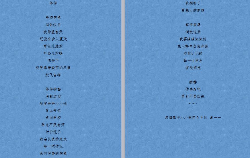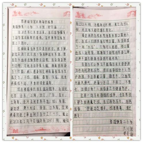 一句句暖心的话语,一张张鲜艳的图画、一份份用心的小报表达了少先队员们的心声,传达着他们对于疫情的关注,对一线防疫工作者的敬意,对全社会共抗疫情的决心与信心。