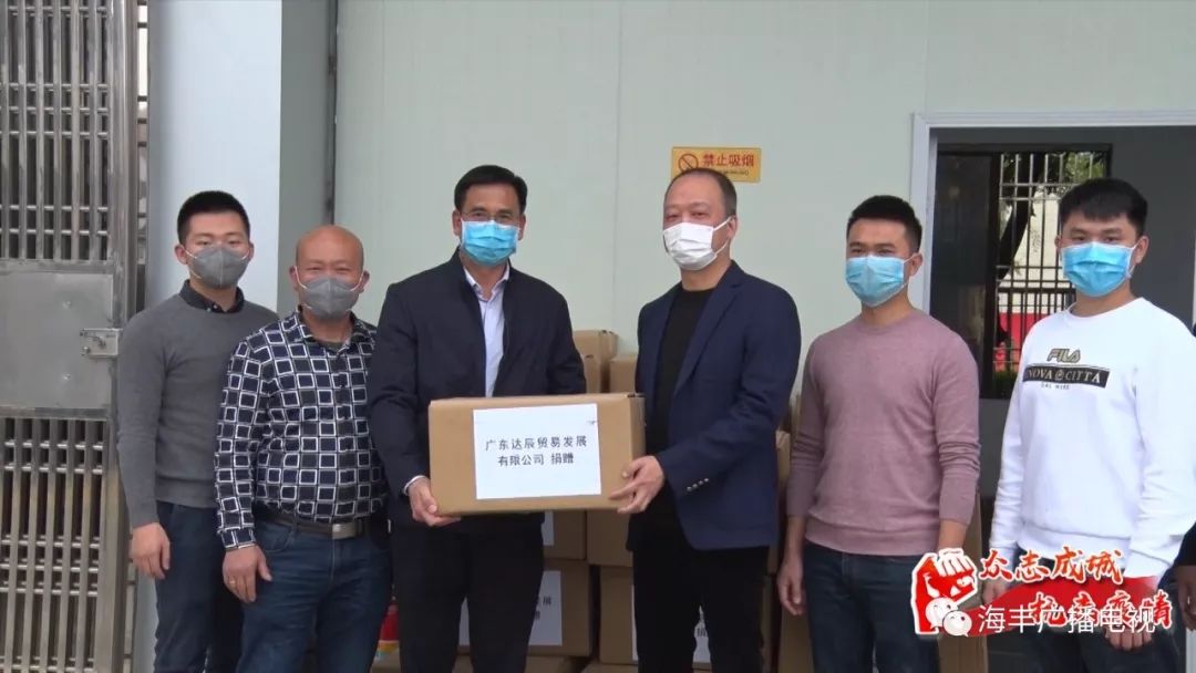 本月10日,广东达辰贸易有限公司等多家企业向海丰县捐赠一次性口罩、隔离衣、消毒液等医用防护物资一批。海丰县委常委、常务副县长卓凛波对他们的善举表示衷心感谢。