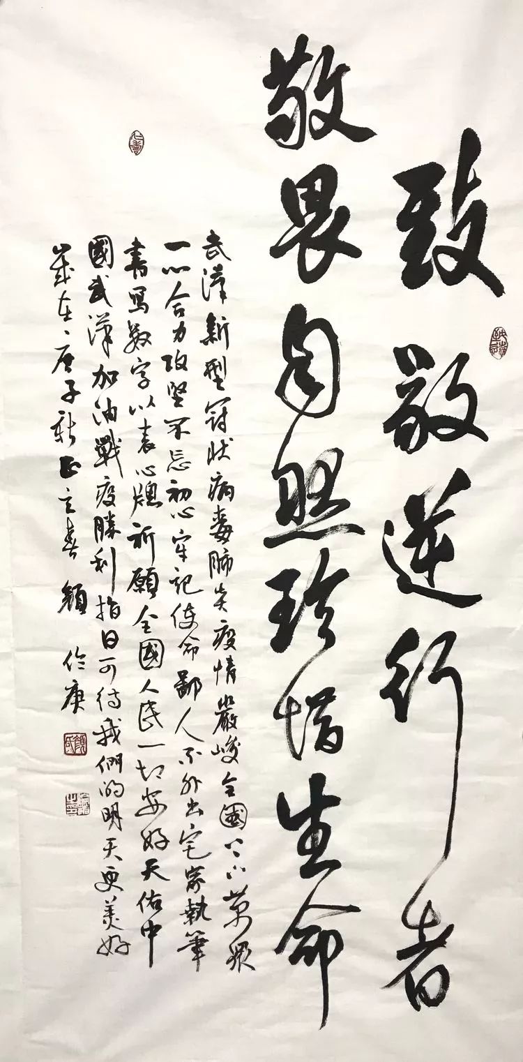 “2020战疫网络书法展”由城区文联、城区书协主办。连日来,书协会员和书法爱好者们满怀激情投入到创作中,通过以网络为载体,把各体书法作品向广大市民致以新春的祝福,陪伴大家居家看书法展,过一个健康平安的假期。这次展出的书法作品内容积极向上,特别融入了众志成城抗击疫情等时代内容,向参与战疫一线的医者致敬!让您足不出户,既能欣赏佳作,也能掌握一定的抗击疫情知识。