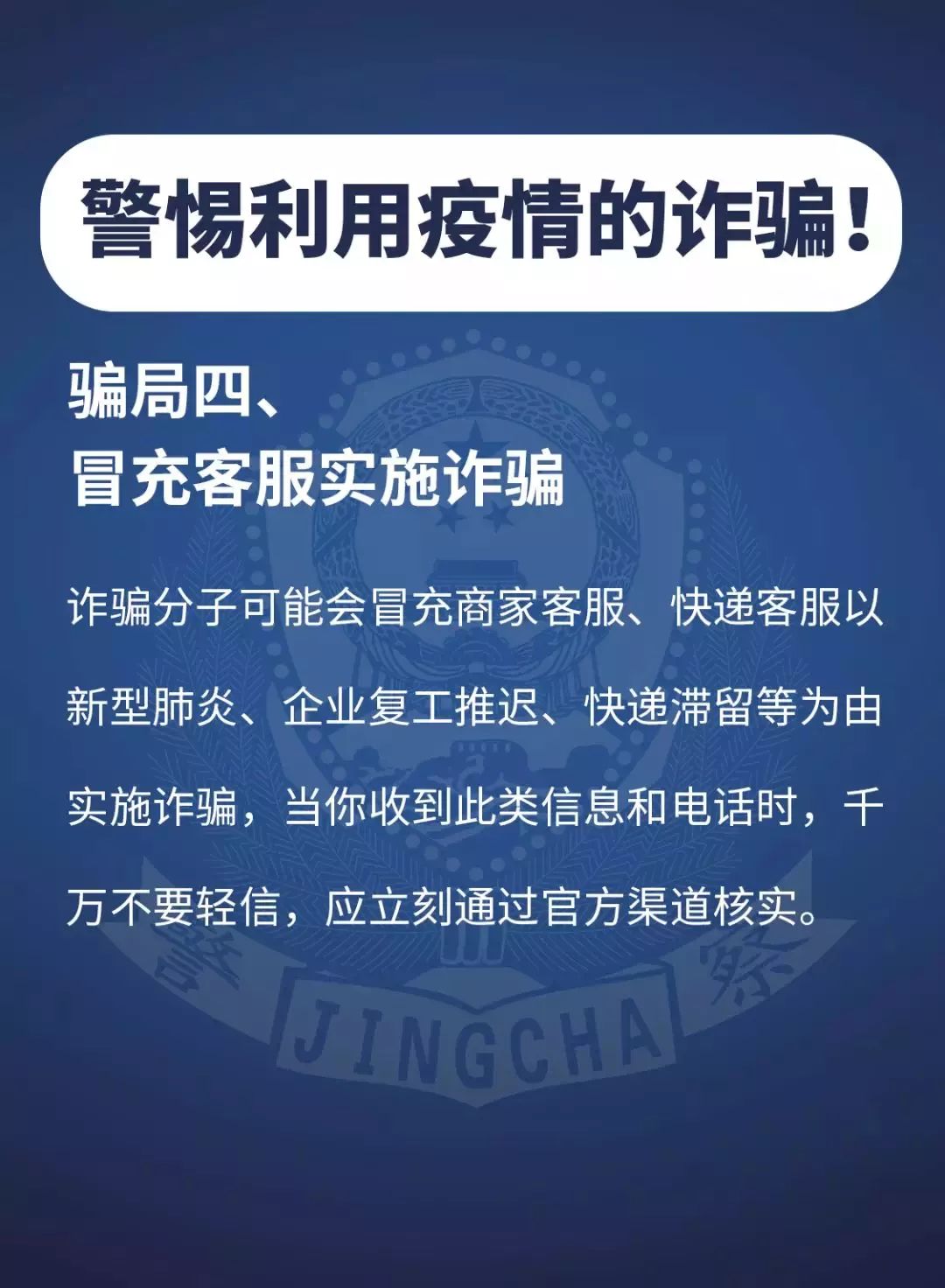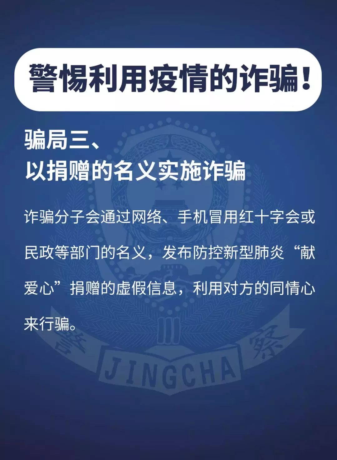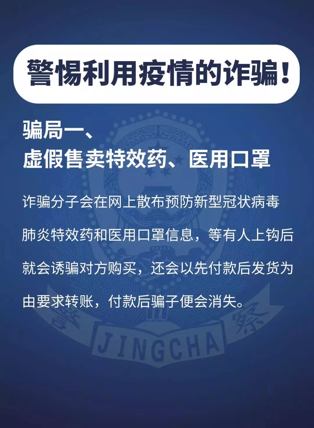 海丰警方提醒 疫情当前,务必提高防范意识 1 购买口罩、酒精等防疫用品一定要通过正规渠道,保证质量的同时,也要小心被骗。 2 对方提出提前付款的要求,或者是汇款、转账、提供验证码等信息时,一定要提高警惕。 3 一旦被骗,要及时拨打110电话,或者到就近公安机关报案处理。 抗击疫情期间,除了要对防疫物资相关诈骗提高警惕外,海丰警方还为大家整理了利用疫情实施诈骗的多种套路:
