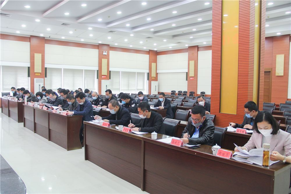 会议指出,习近平总书记的重要讲话,深刻阐明了法治对于防控新型冠状病毒感染肺炎疫情的重要意义,从立法、执法、司法、守法等方面对加强防控工作作出系统部署,为依法打赢疫情防控阻击战指明了前进方向、提供了根本遵循。会议强调,一要提高政治站位,增强“四个意识”、坚定“四个自信”、做到“两个维护”,认真学习、深刻领会、坚决落实习近平总书记重要讲话精神和中央全面依法治国委员会第三次会议精神,坚持运用法治思维和法治方式开展疫情防控工作,切实保障人民群众生命安全和身体健康。二要全面依法履职,严格依法实施防控措施,严格执行相关法律法规,依法严厉打击抗拒疫情防控、哄抬物价、暴力伤医、制假售假、造谣传谣等破坏疫情防控的违法犯罪行为,严厉打击聚众赌博、知情隐瞒不报和不按规定组织红白事、民俗活动等行为,依法做好捐赠、受赠等工作,依法依规、及时准确报送发布疫情信息。三要加强疫情防控法治宣传,引导广大人民群众增强法治意识,依法支持和配合疫情防控工作;要强化疫情防控法律服务,深入做好疫情期间矛盾纠纷化解工作,及时提供有效法律援助。四要强化战时纪律,压实责任清单、列出负面清单,切实做到知底线、守底线;持续加强检查督导等工作,为疫情防控提供坚强的组织保证、纪律保证。