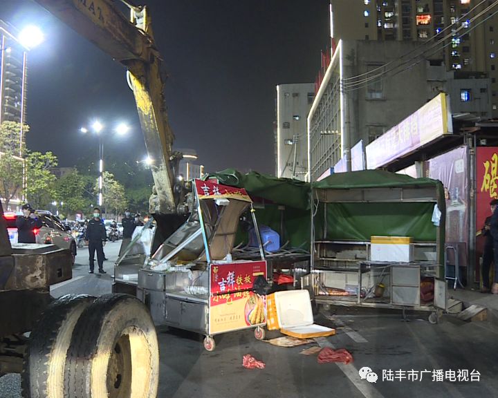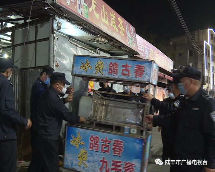 当晚,东海镇联合市公用事业事务中心、市监所、有关村社区等200多人的专门执法队伍,重点对陆城南堤路、北堤路、金碣路、环城路、人民路、人民北路等地开展清理摊点专项整治行动。