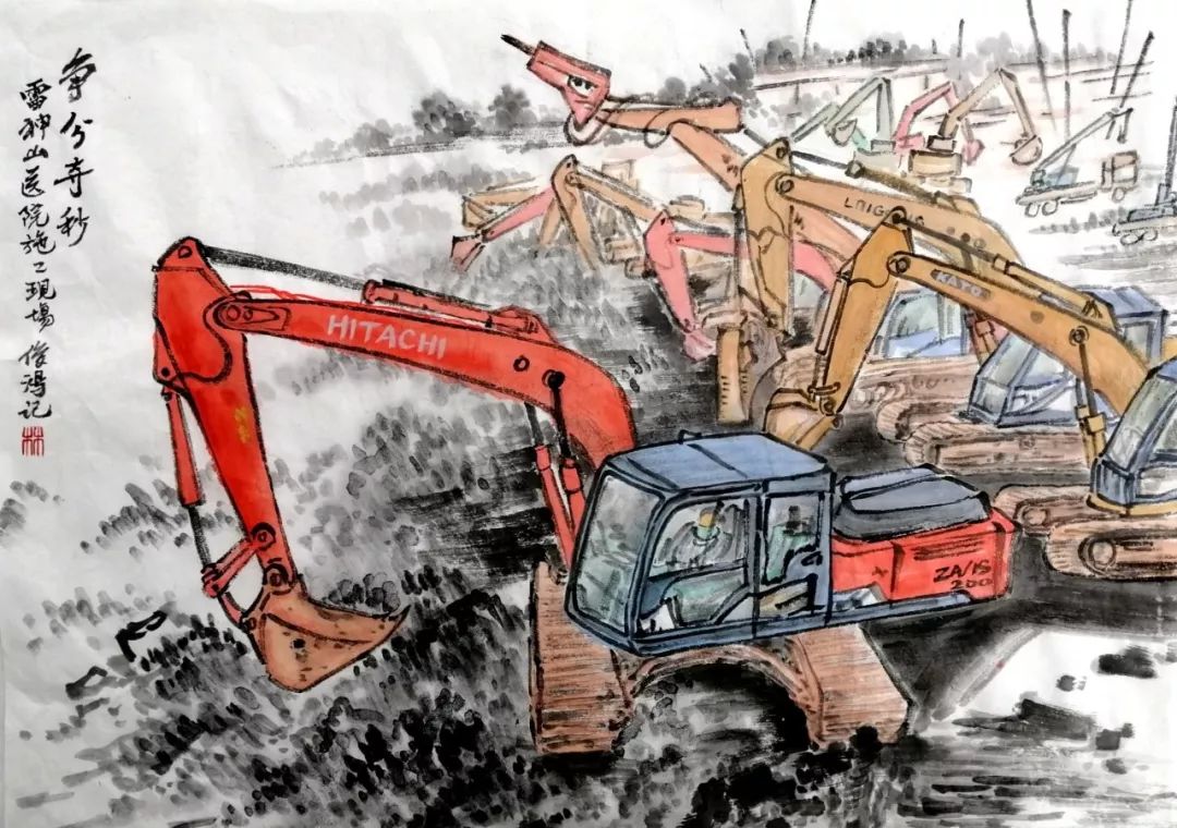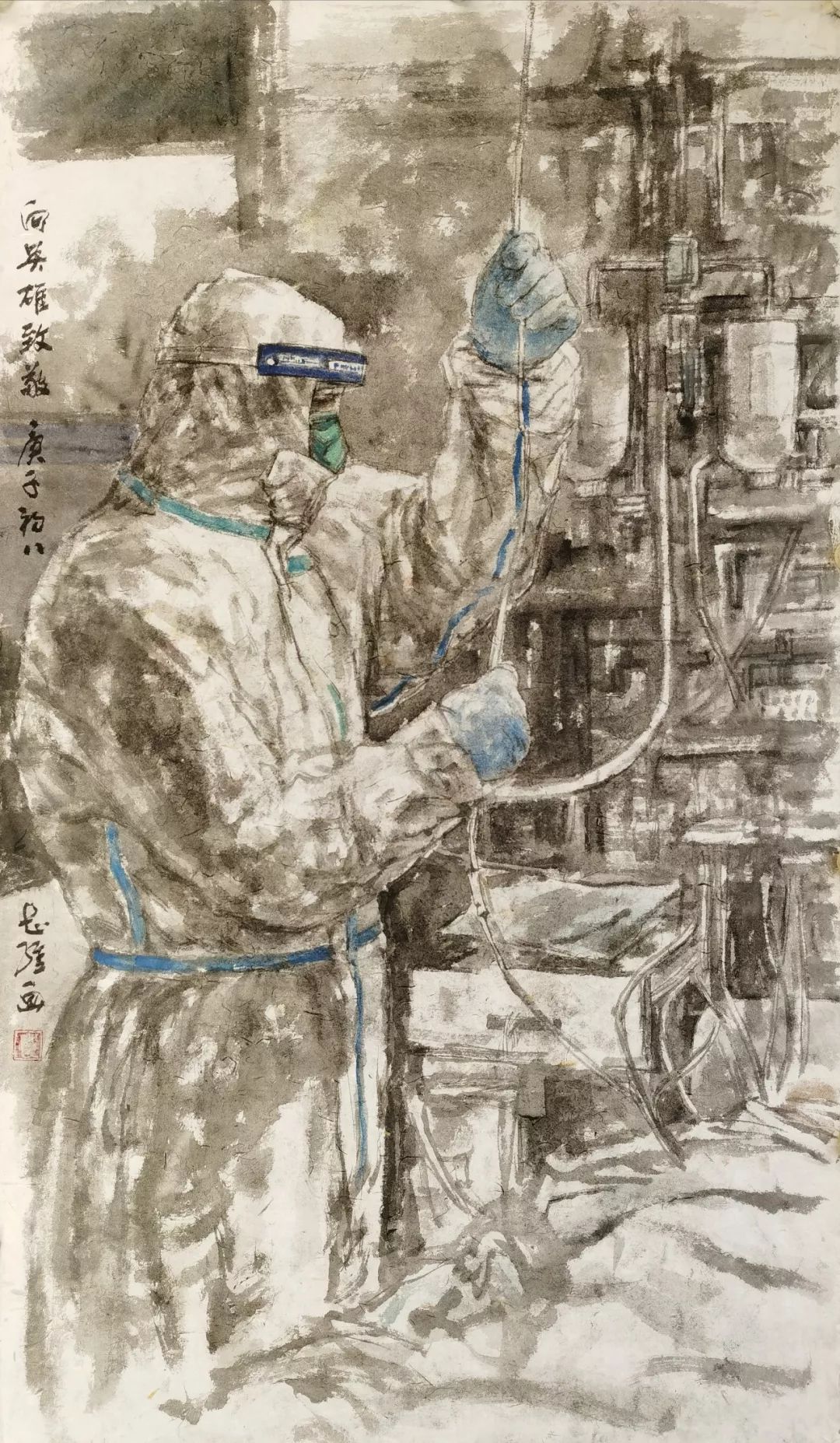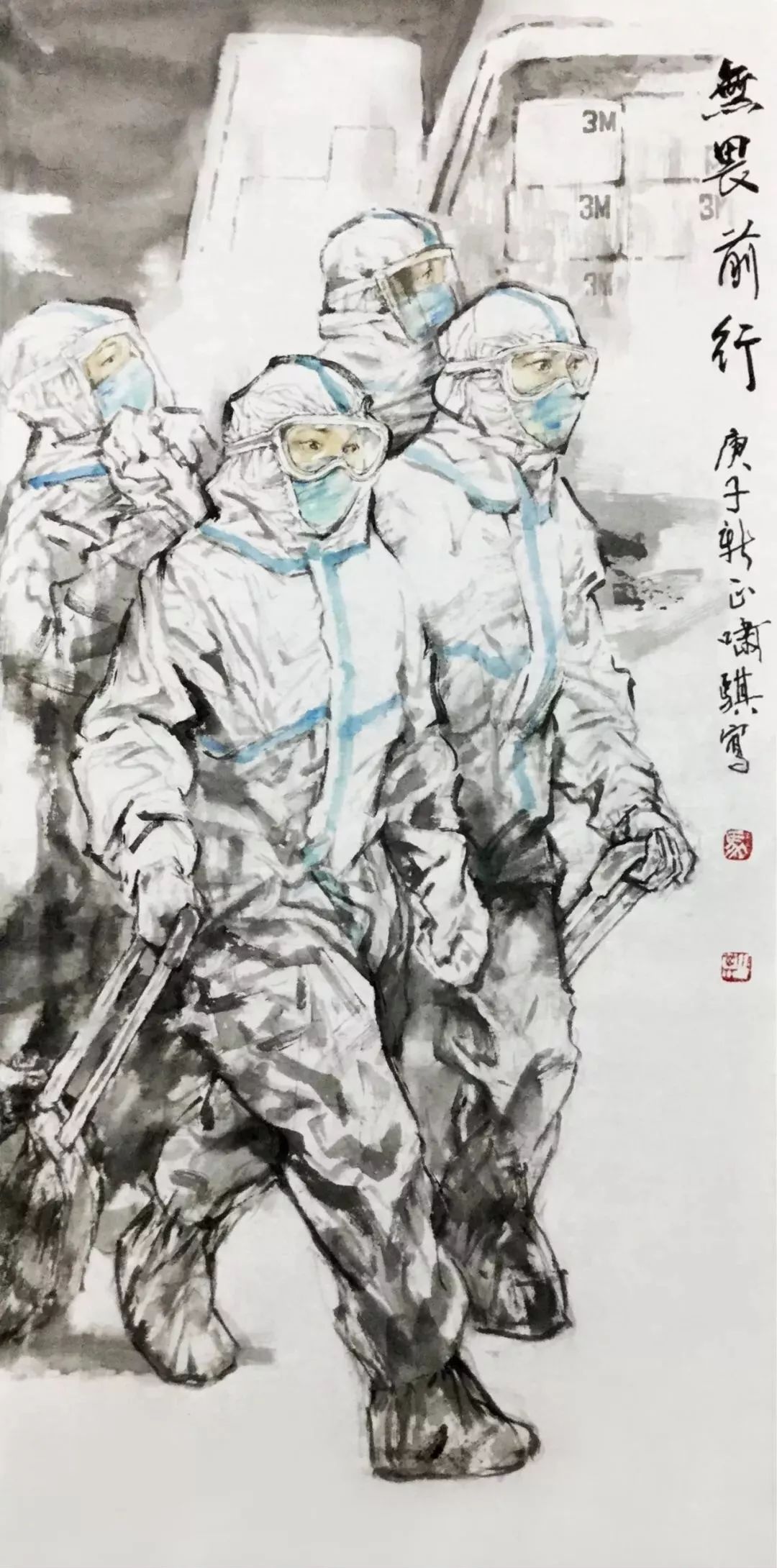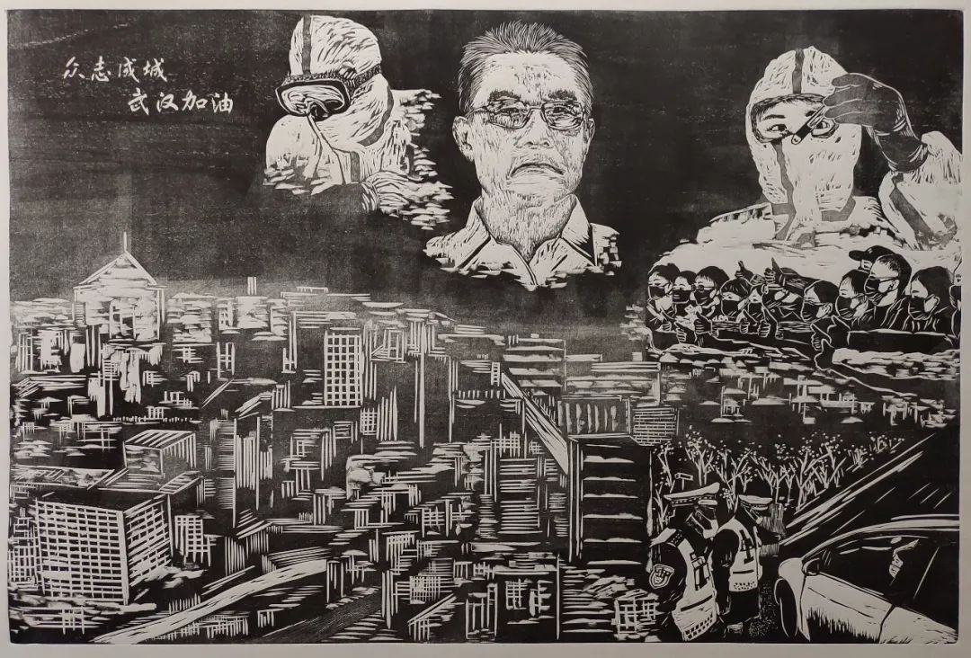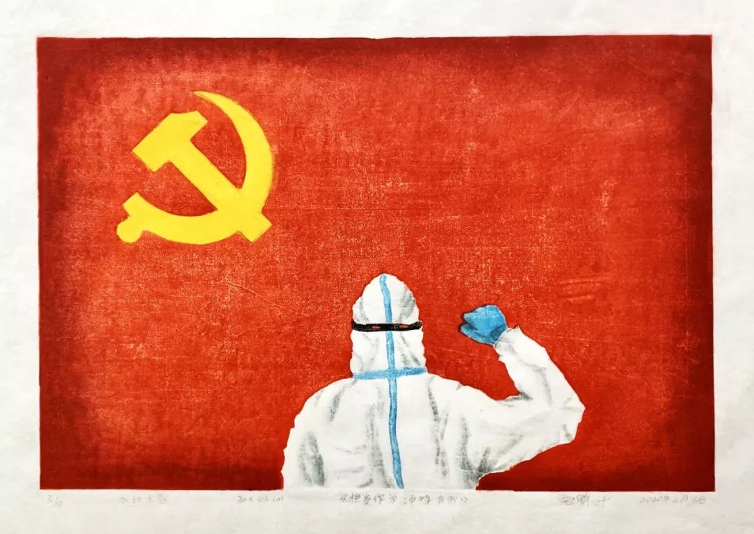 施锦升《担当作为 冲锋有我》(水印木刻版画)