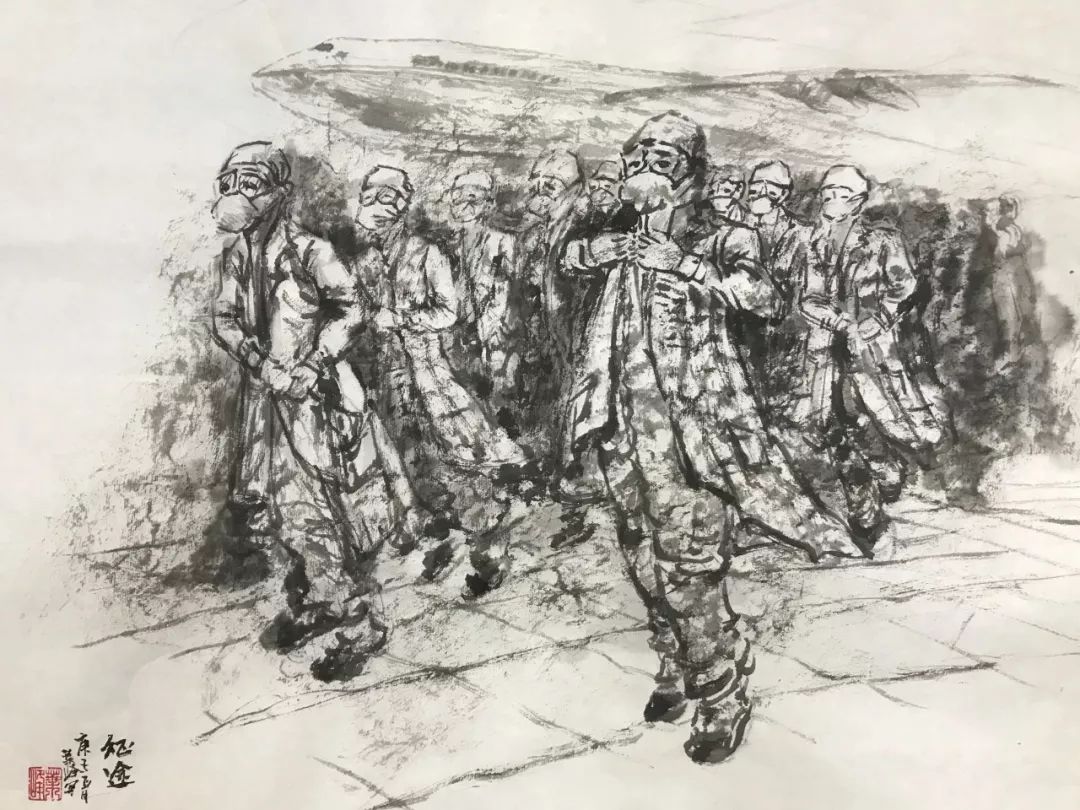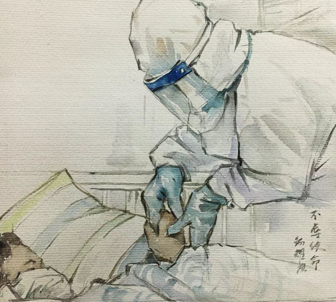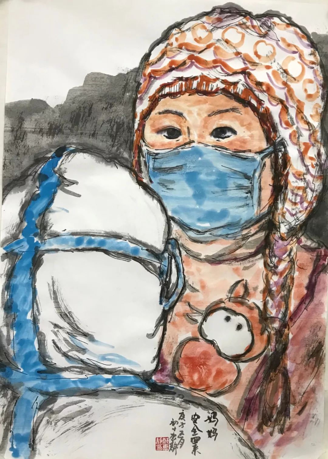 郑惠静《妈妈 安全回来》(钢笔淡彩)