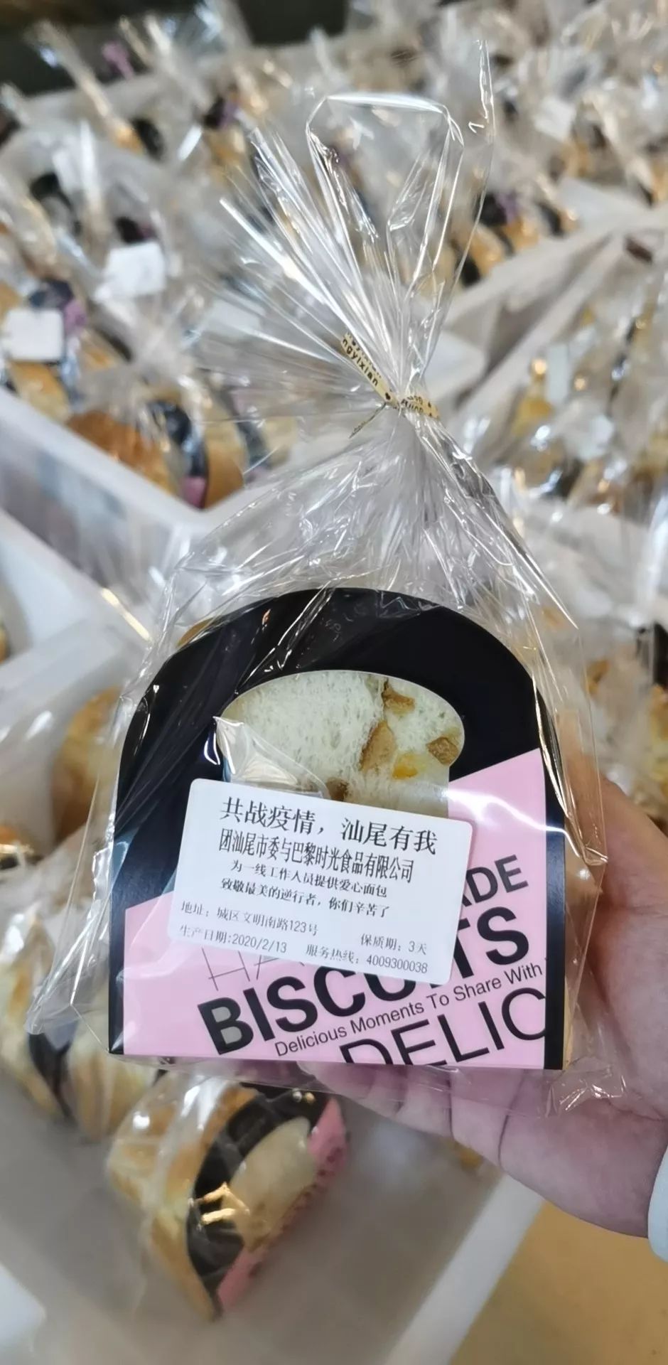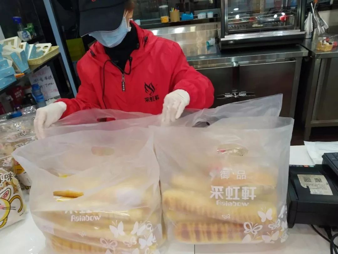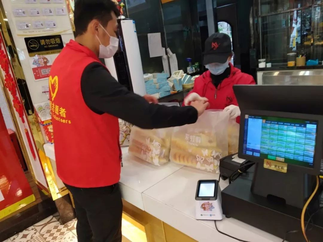 食品行业协会为战疫一线志愿者赠送1000个盒饭。 广东采虹轩食品有限公司董事长庄振光先生为抗疫志愿者赠送每天60份面包,自2月7日开始,并表示将持续下去,直到疫情结束。 巴黎时光食品有限公司胡国威先生为疫情防控一线工作人员提供200份爱心面包。