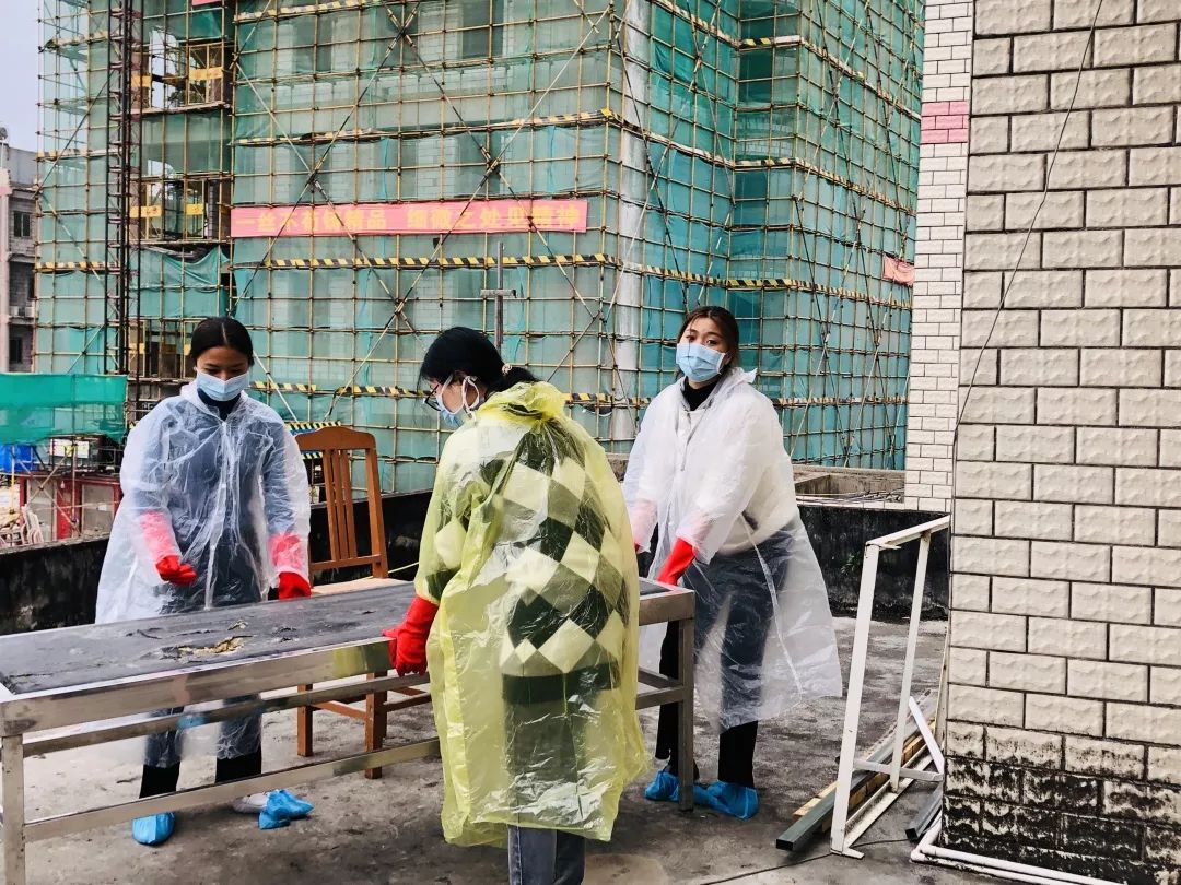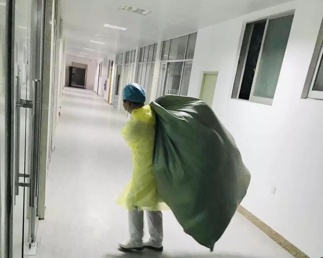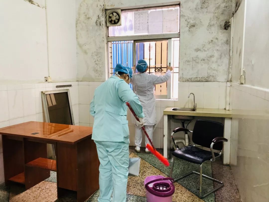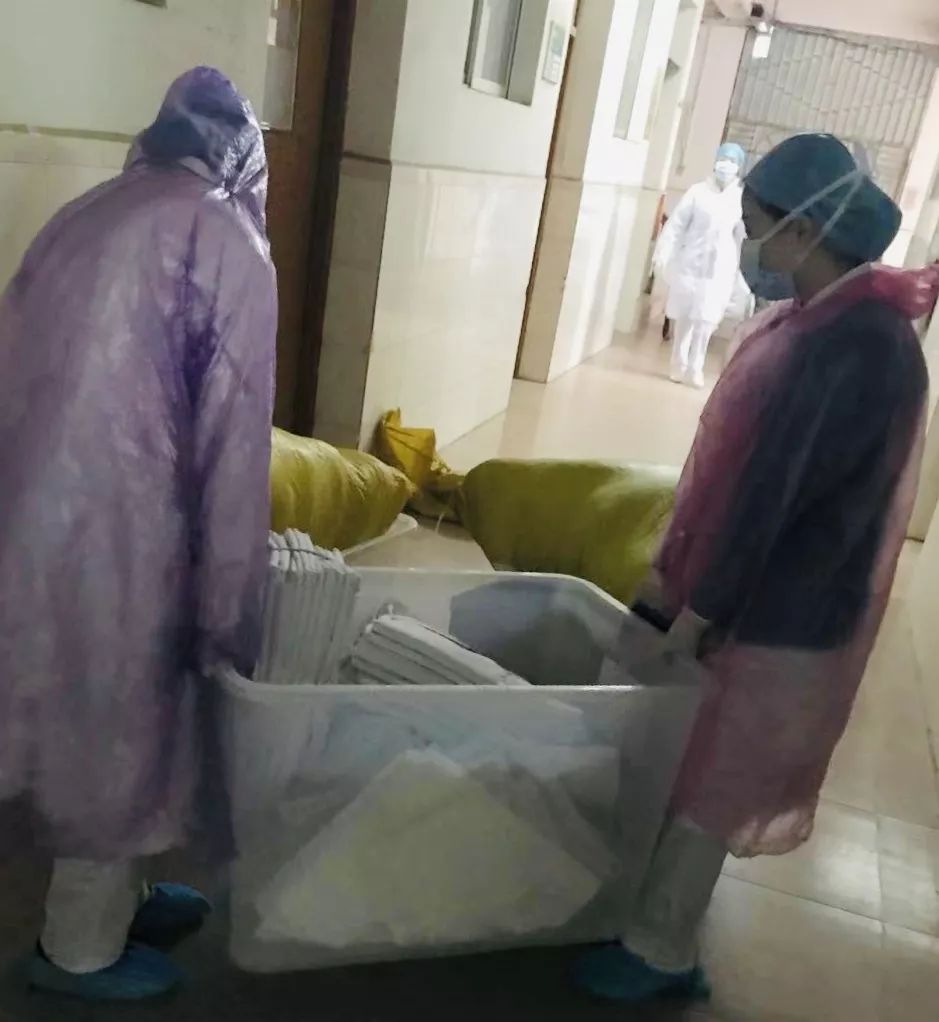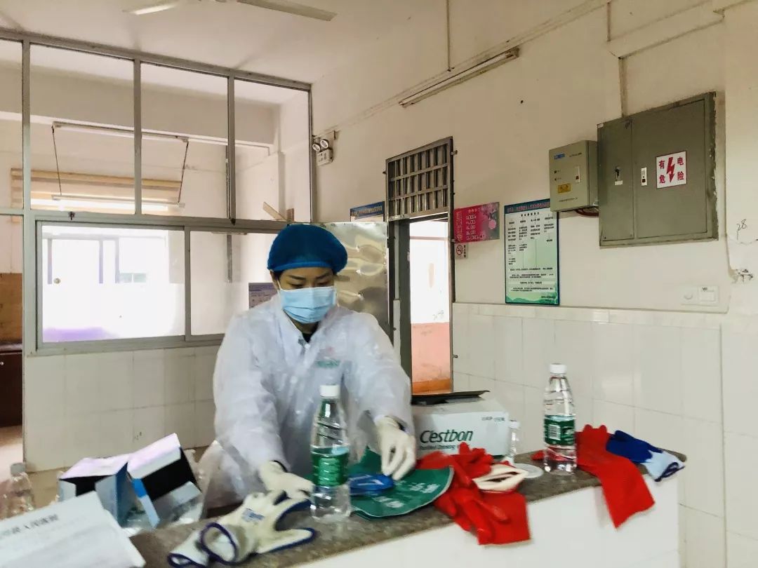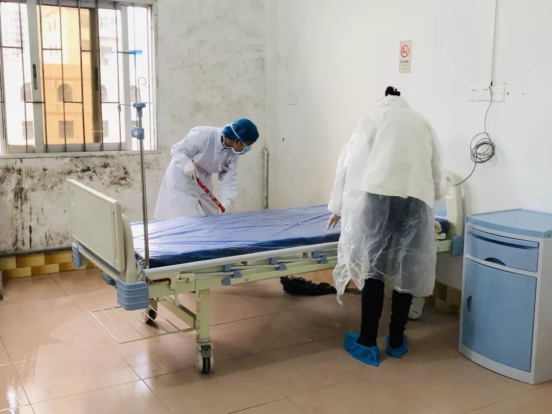 在新冠肺炎疫情防控期间,为了减少交叉感染,陆河县人民医院将发热门诊临时安排在老一洲楼一楼,隔离病区安排在老一洲楼二、三楼。虽然是临时使用,但是急诊科和内二科的医护人员在与病毒斗争的同时还自告奋勇抽空当起清洁工、搬运工等。 经过紧锣密鼓的布置,各项物资准备、功能区改造、人员培训、消毒隔离工作几乎一天之内完成。即使环境陈旧、设备简陋,但丝毫不影响大家的战胜疫情的信心,坚决打赢这场没有硝烟的战争。 而且为了节约物资,他们尽量把工作集中起来做:查房、观察病情调整治疗方案、咽拭子采样、写病历、沟通病情;整理床单、输液、处理医嘱、抽血、清理垃圾等等。除此之外,还要给患者心理辅导,帮助他们增强信心,战胜病魔。医务人员一般在隔离病区都要穿着防护服、护目镜和口罩呆上4-6小时,最多的时候8小时甚至更长的时间。但是他们毫无怨言,而是迎难而上,抗“疫”到底!