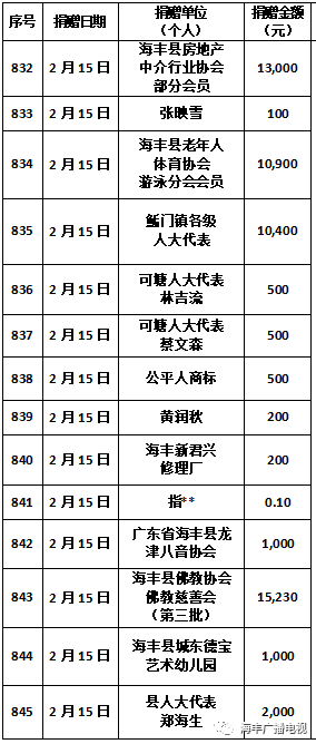 【海丰在行动】第十五批名单公布,海丰各界人士慷慨解囊助战“疫”