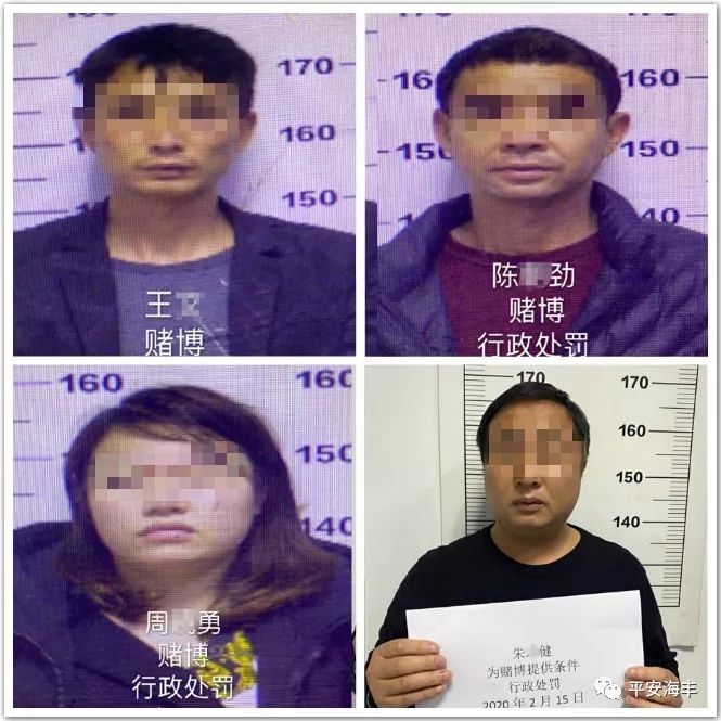 疫情期间,海丰公安全面启动高等级社会治安巡逻防控勤务模式,始终保持管控工作高压态势,采取有力措施有效切断新型冠状肺炎的传播途径,各警种、各派出所充分发挥“一警多能”作用,在做好疫情防控的同时,加大对辖区违法聚集活动的巡查和打击力度,严密防控,严厉打击各类违法犯罪活动。2月14日,附城派出所在巡逻时发现联河下围村存在聚众赌博情况,现场查获涉赌人员朱某健、陈某劲、王某、周某勇等4人,缴获赌具、赌资一批。公安机关依法对朱某健处行政拘留,对陈某劲、王某文、周某勇等三人处行政罚款。