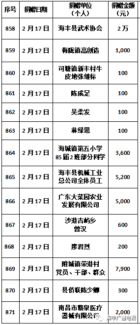 【海丰在行动】第十七批名单公布,海丰各界人士慷慨解囊助战“疫”