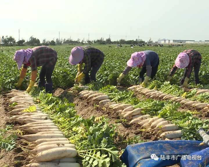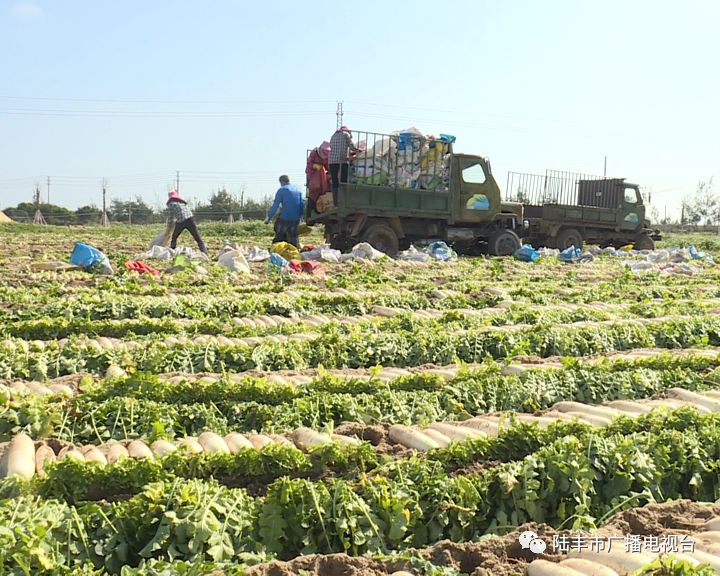 记者先后走访了陆丰市萝卜省级现代农业产业园点石农产品销售配送市场、广东植物龙生态农业碣石产业园、广东企耕农业科技生态园和部分养殖户,看到农户们正在田间地头有序的忙碌,并处理、打包刚采摘下来的萝卜、番薯等农作物,准备运往市场进行销售。