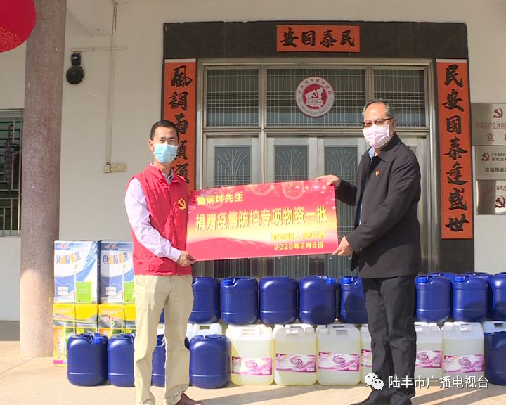 在深圳经商的乡贤蔡瑾向陆丰市公用事业局、城东镇人民政府和上陈村捐赠医用口罩2万个,向东海镇桃园社区捐助口罩2000个,向陆丰市广播电视台和陆丰报社捐助口罩各1000个。