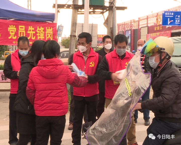 陆丰籍热心乡贤黄如光、黄少俊父子在南塘镇元兴社区一路口为过往市民免费派发口罩3000余个。