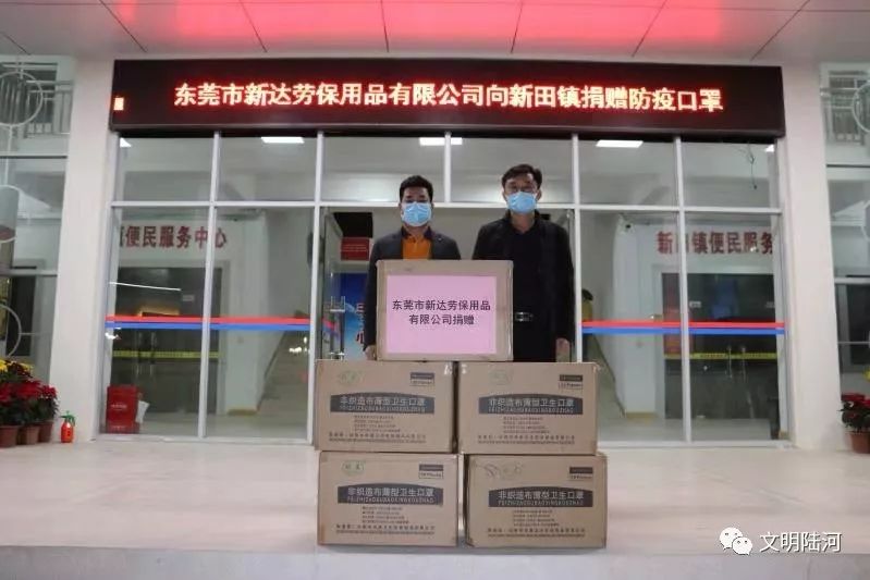 新田镇外出乡贤魏文亮(东莞市新达劳保用品有限公司董事长)向陆河县多个部门捐赠防疫口罩共28000个。