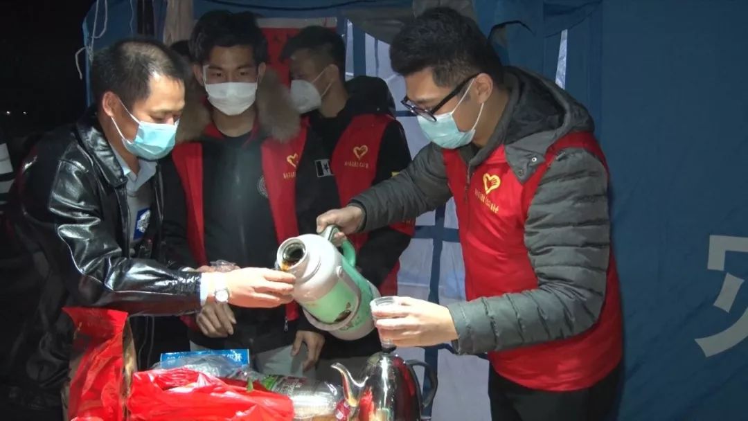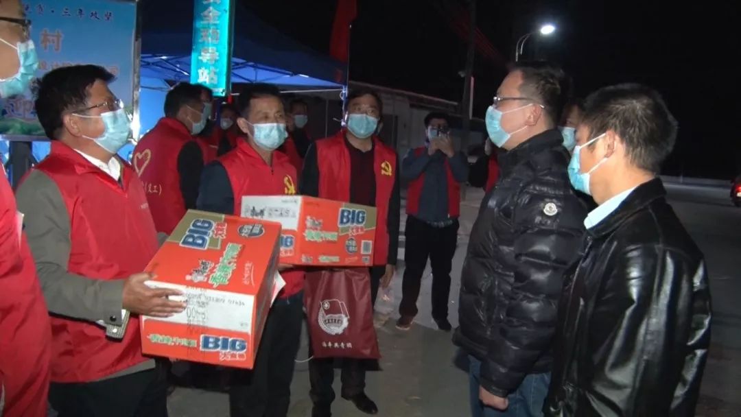 当晚,在平东镇的大塘、新平等村委防疫检测点,团县委慰问人员向坚守一线的志愿者们,捧上一碗碗热乎乎的姜糖水,还送上了方便面、口罩、消毒水等物品,向这些可爱的“守夜人”表示衷心的感谢。在寒冷的夜里,为他们的坚守添添暖、加加油。
