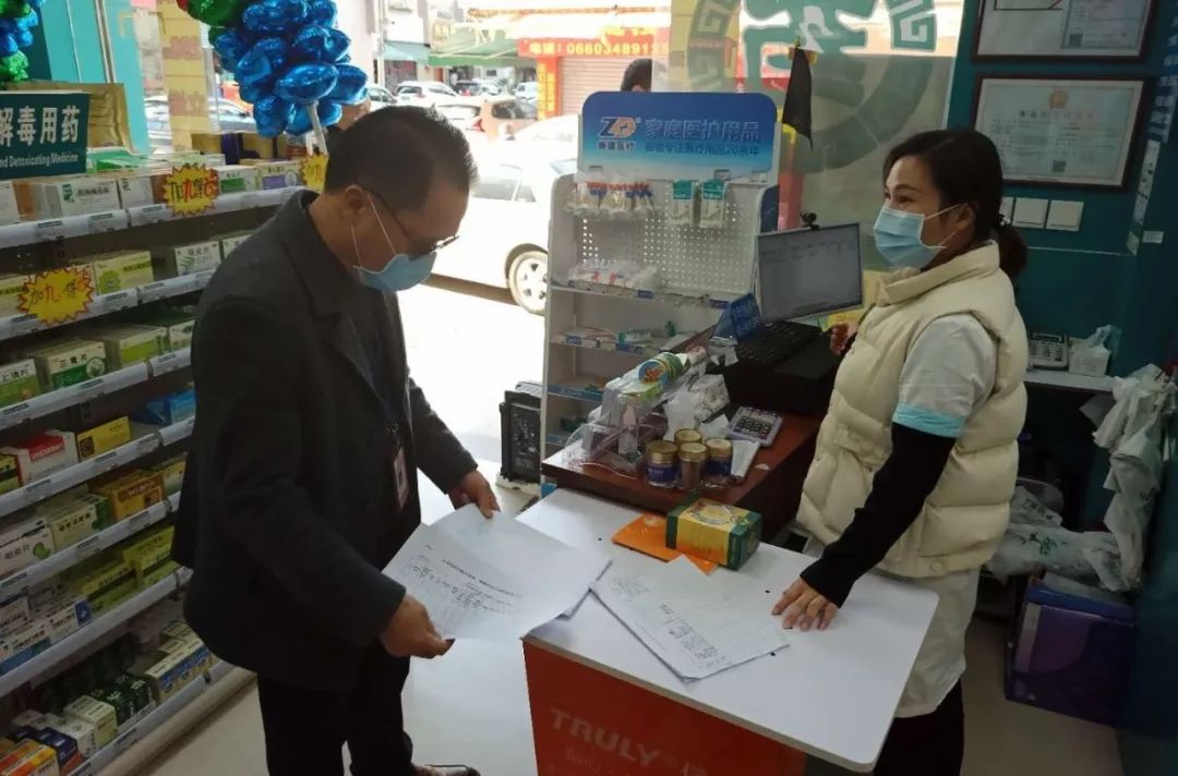 加强市场巡查监管,落实疫情防控措施 市市场监管局组织执法人员检查了红海湾的5家药店,查阅了销售退烧、咳嗽类药品登记情况,并向药店负责人宣贯了《关于建立疫情防控期间在零售药店购买发热咳嗽药品人员信息登记报告制度的通知》,同时要求药店从业人员不得哄抬物价、囤货居奇,不得销售不合格的药品和医疗器械,并引导市民理性购药。检查过程中未发现违法违规情况。