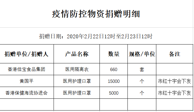 海丰县新型冠状病毒感染的肺炎疫情防控指挥部接受物资明细情况: