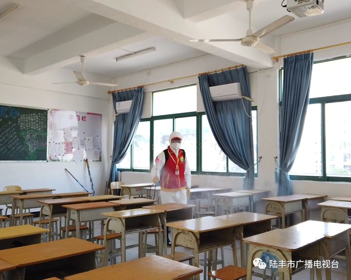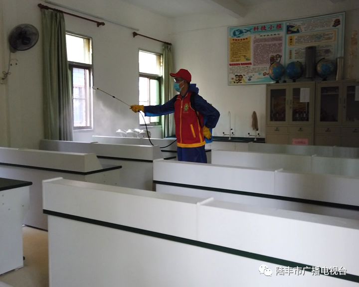【陆丰在行动】陆丰市善爱公益志愿者走进校园开展消毒行动