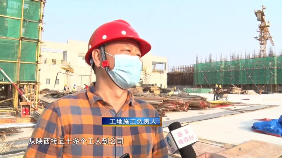 记者走访海丰县重点项目之一的保利集团海德公馆,混凝土搅拌车轰鸣,多个塔吊空中飘拂,建筑工人们来回穿梭,建设现场正“合奏”着一曲复工版的《春天里》。