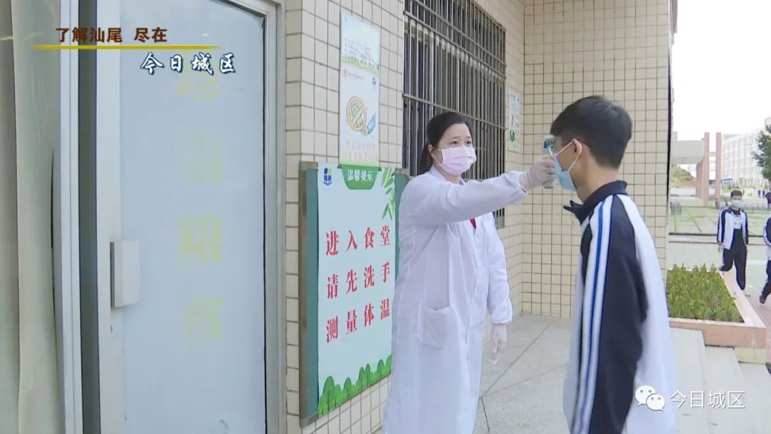 活动就学生如何入学返校举行校园疫情防控应急演练,演练模拟了学生分班分批、错时错峰返校、就餐、就寝,分为校门、教室、食堂、宿舍等四个场景。操作流程分消毒消杀、体温测量、就餐就寝以及发现发热人员时的应急处置等环节。演练中,参与晨午检的疫情监测组老师、值日行政提前到达学校,在检测自我体温后,对场地、设备进行了消毒处理,全面做好准备迎接学生晨午检。学生到达校门后,被要求佩戴口罩,有序地排队入校门检测体温,学生之间间隔1米,不得聚集。检测组老师引导学生通过自动测温区,细心留意自动测温系统是否发出警报声。当有模拟发烧学生通过自动测温区时,警报声响起,测温人员手持测温枪对该生重测体温,发现体温超过37.3度,立即带其到隔离观察室,并上报学校总指挥;医生立即了解该生情况,填写个人信息表,医生现场作出初步研判,再由班主任通知家长带学生就医。