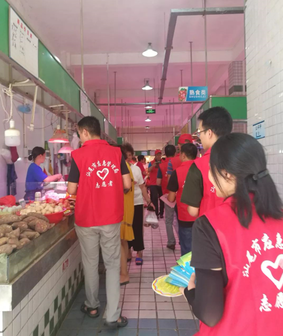 志愿者们手拿扫帚、簸箕等工具,对奎山社区市场门口、市场内过道进行清扫,拾捡垃圾。并向沿街商铺和市民群众发放创卫倡议书,安全教育宣传单、急救常识宣传单,向市民群众宣传创卫工作的重大意义和防灾减灾、应急管理知识。此次活动共向社区内80多户店铺、摊贩、市民群众发放宣传材料5000余份。
