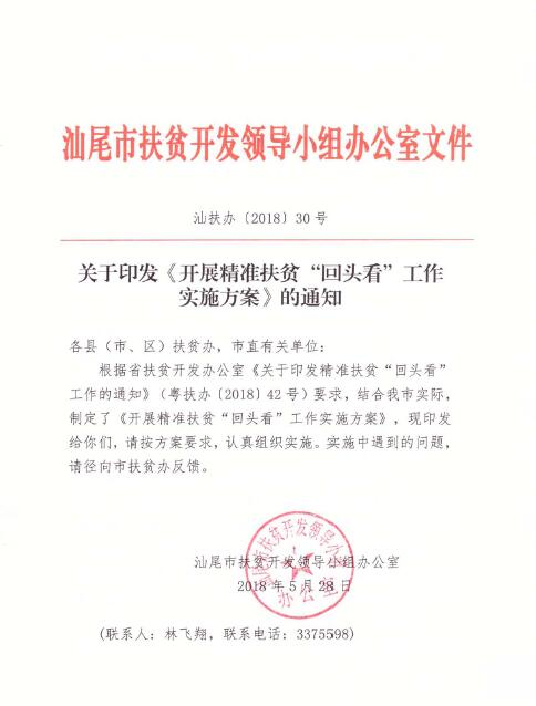 汕扶办[2018]30号关于印发《开展精准扶贫“回头看”工作实施方案》的通知