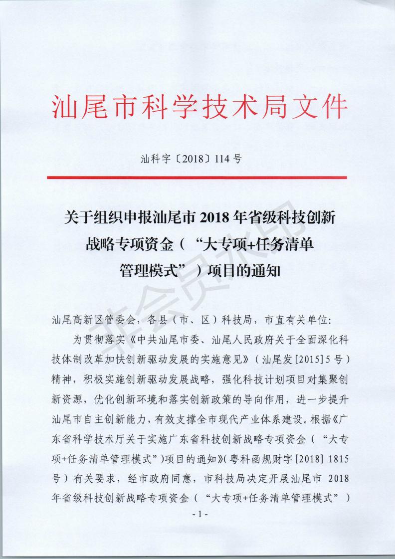 省级科技创新战略专项资金(“大专项+任务清单管理模式”)项目申报指南