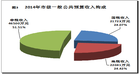2014年市级政府性基金预算收入57424万元,完成年度预算的151.5%;支出46480万元,完成年度预算的108.35%。