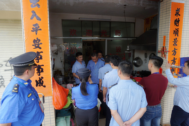 本次专项整治主要是对超市、食品销售单位、餐饮经营单位和小食店逐一进行排查,重点对许可证照、人员健康证明、过期食品、食品及原料采购来源、食品安全卫生情况和“门前三包”情况等方面进行检查,规范生产经营行为,督促落实主体责任。活动过程中,执法人员一方面对经营环境进行现场检查,对存在问题进行依规依法处理,同时向经营者派发《食品经营户须知》等宣传资料,强化食品经营者主体责任意识,树立规范经营理念,引导经营者诚实守信合法经营。对于无证经营店面和占道经营“店面”进行现场关停,并责令限期整改。