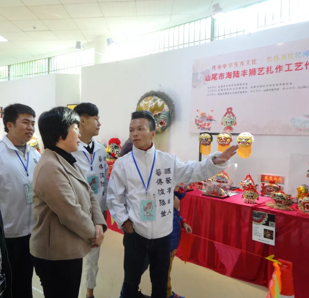 文广新局局长施硕焱到市图书馆展厅参观海陆丰狮艺扎作工艺作品展,详细了解海陆丰民间狮艺扎作工艺和传统历史文化艺术等相关情况,肯定了民间传统工艺作品制作成果,勉励传统工艺人立足地方特色,以工匠精神把海陆丰地区的民间传统文化做细、做精,不断推动精品创作生产,进一步提升pc蛋蛋