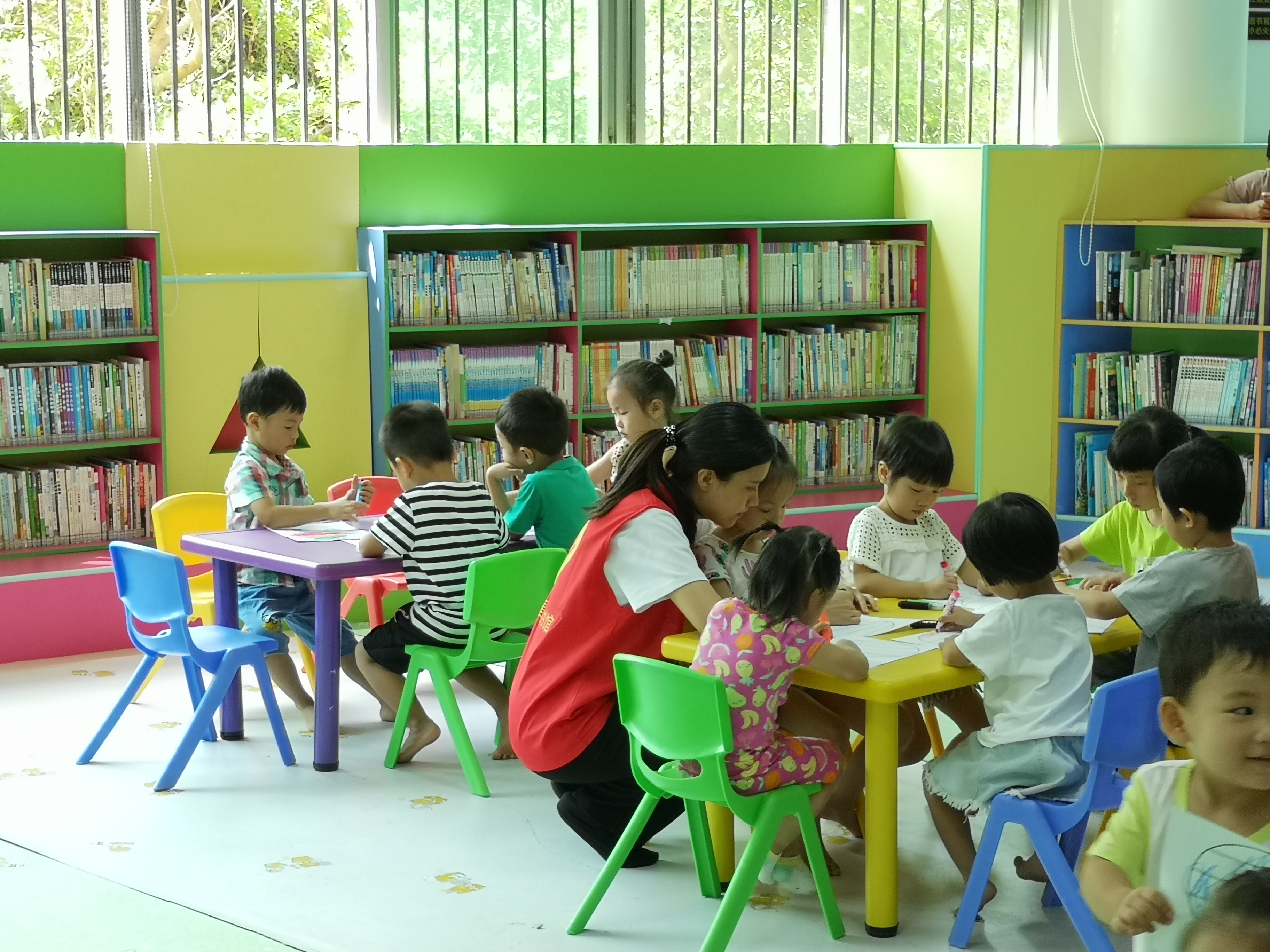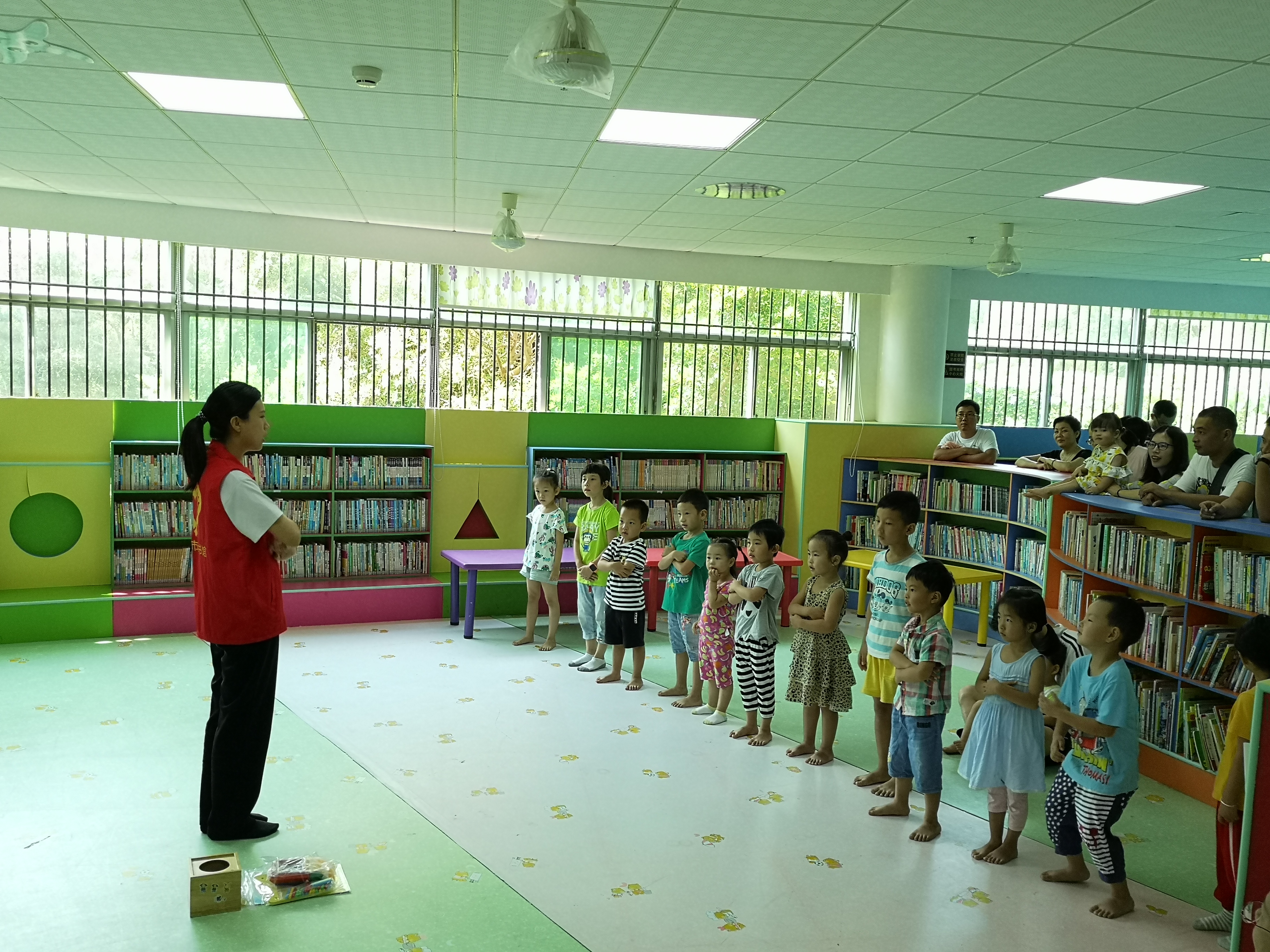 9月28日上午,市图书馆少儿室举办了第六期“悦”读营亲子阅读活动——《认识颜色》英语教学公益活动,此次活动邀请了两名志愿者老师,并有16组亲子家庭学员参与。