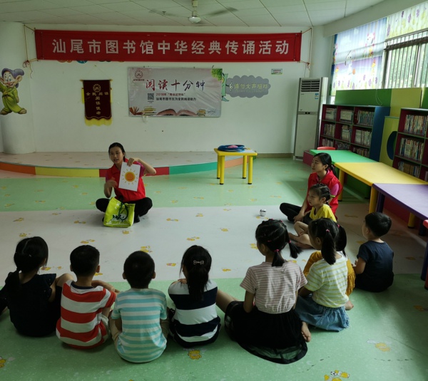 图书馆少儿室举办了第六期“悦”读营亲子阅读活动——“卡片识天气”英语教学活动,此次活动邀请了五名志愿者老师,并有15余组亲子家庭学员参与。