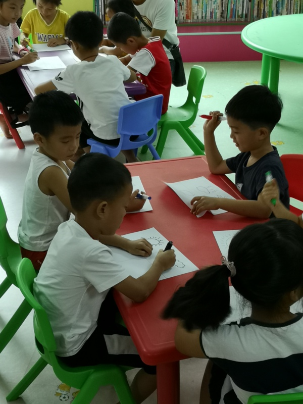 绘画环节中,小朋友们在老师的带领下开动脑筋,运用手中的画笔,画出了自己在日常生活中所观察到的天气景象。利用“天气卡片”英语教学,一方面激发小朋友们对大自然的好奇心,培养了小朋友们细心观察周围事物的好习惯,另一方面,让小朋友们在潜移默化之中培养学习英语的兴趣。