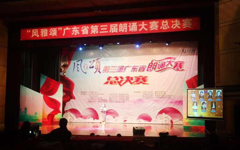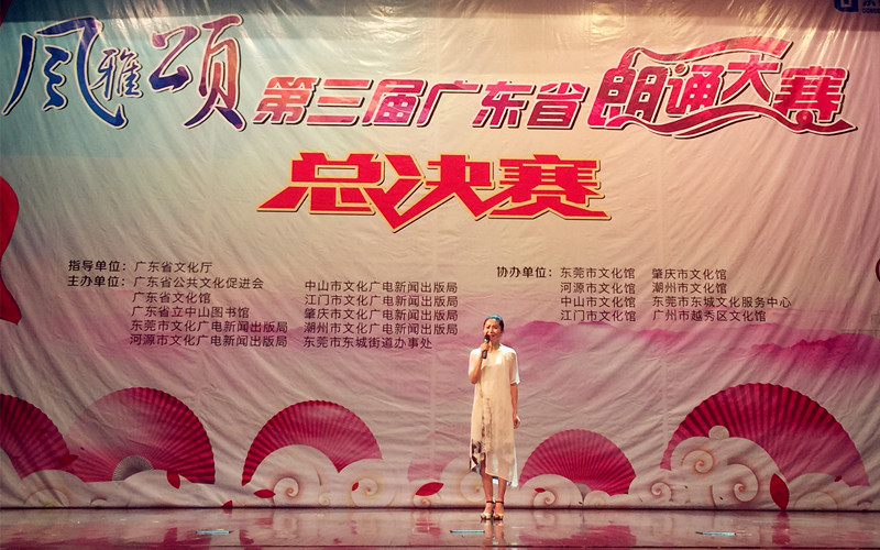 该大赛由广东省文化厅指导,省公共文化促进会、省文化馆、省立中山图书馆等单位联合主办,在政府文化部门指导下的一项常设性文化赛事,是我省目前为止规格最高、实力最强、规模最大、影响力最广的朗诵赛事。通过充满正能量的优秀朗诵作品,充分展示了广大干部群众践行社会主义核心价值观、奋发进取的良好精神风貌。