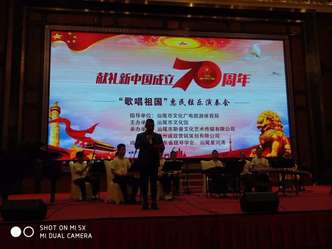 2019年7月20晚上8点,在美丽的pc蛋蛋(中国)开奖记录查询站 区湖滨路星河湾一楼演奏厅,市文化馆主办的献礼新中国成立70周年“歌唱祖国“弦乐演奏会如期奏响。市文化广电旅游体育局副局长陈楚君出席,与现场500多位市民共庆新中国70华诞。