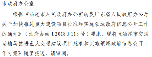 交通运输局推进重大交通建设项目批准和实施领域政府信息公开方案