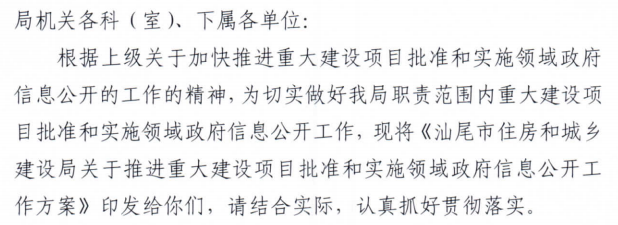住房和城乡建设局关于推进重大建设项目批准和实施领域政府信息公开工作方案