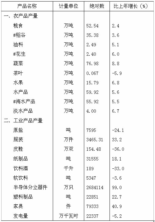 注:工业产品产量统计范围是全部国有工业及年销售收入500万元及以上非国有工业。